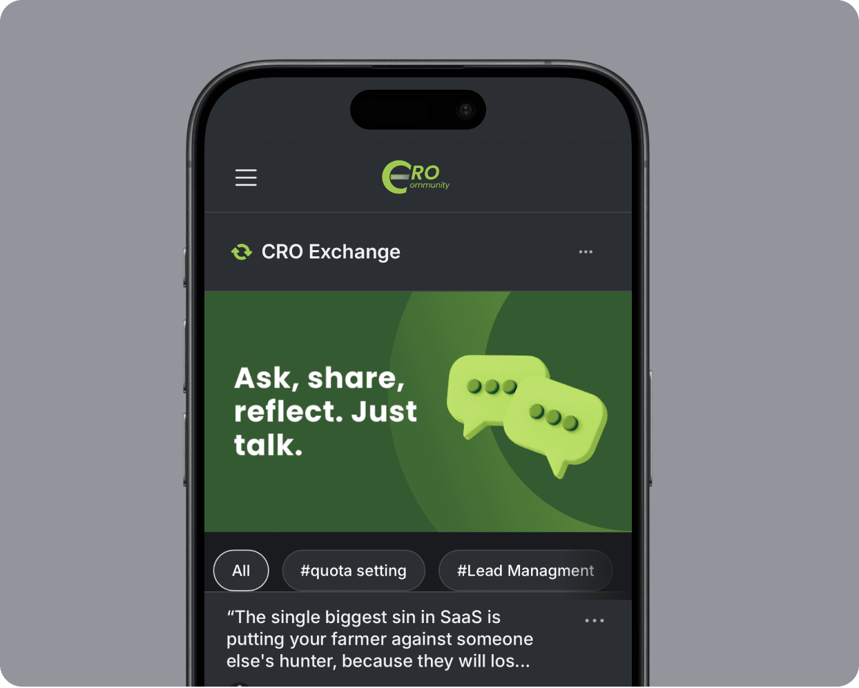 I founded the CRO Community to bring revenue leaders together on eye-level - to share what works, learn faster, and push each other forward. Now that it’s alive, I see the same value for myself that I hoped it would create for everyone.